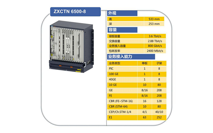 ZXCTN 6500-8采用開放式的技術平臺,兼容傳統(tǒng)的傳輸和數(shù)據(jù)網(wǎng)絡。
